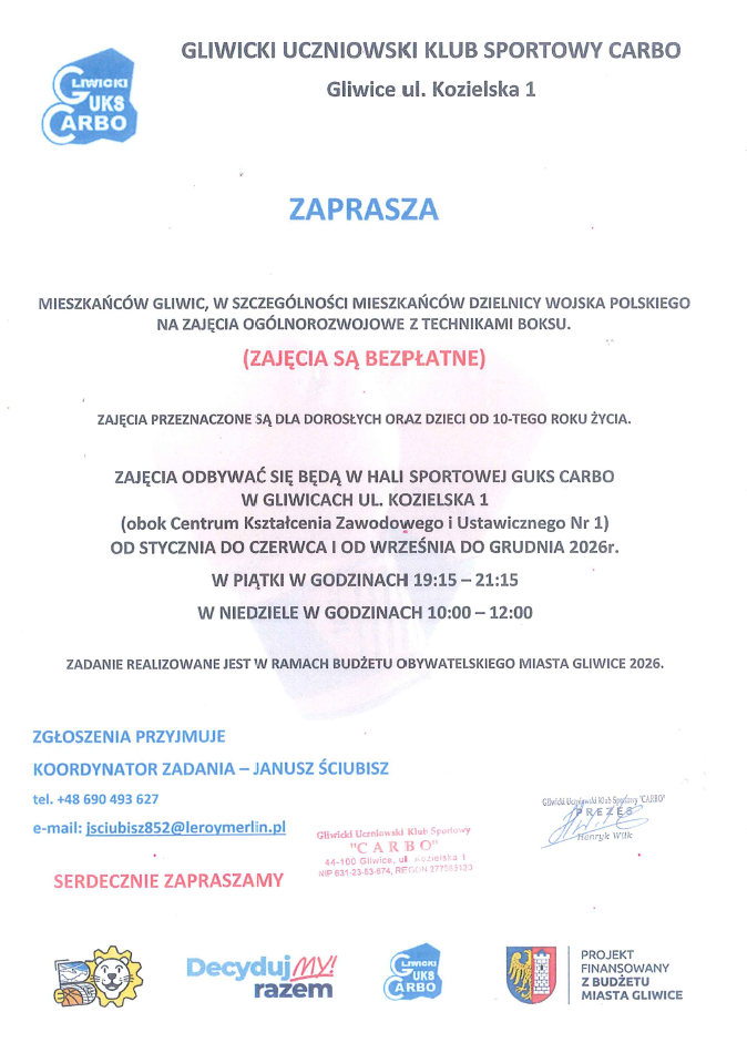 Kontakt w kwestii zajęć pod tel. +48 690493627 lub e-mail: jsciubisz852@leroymerlin.pl