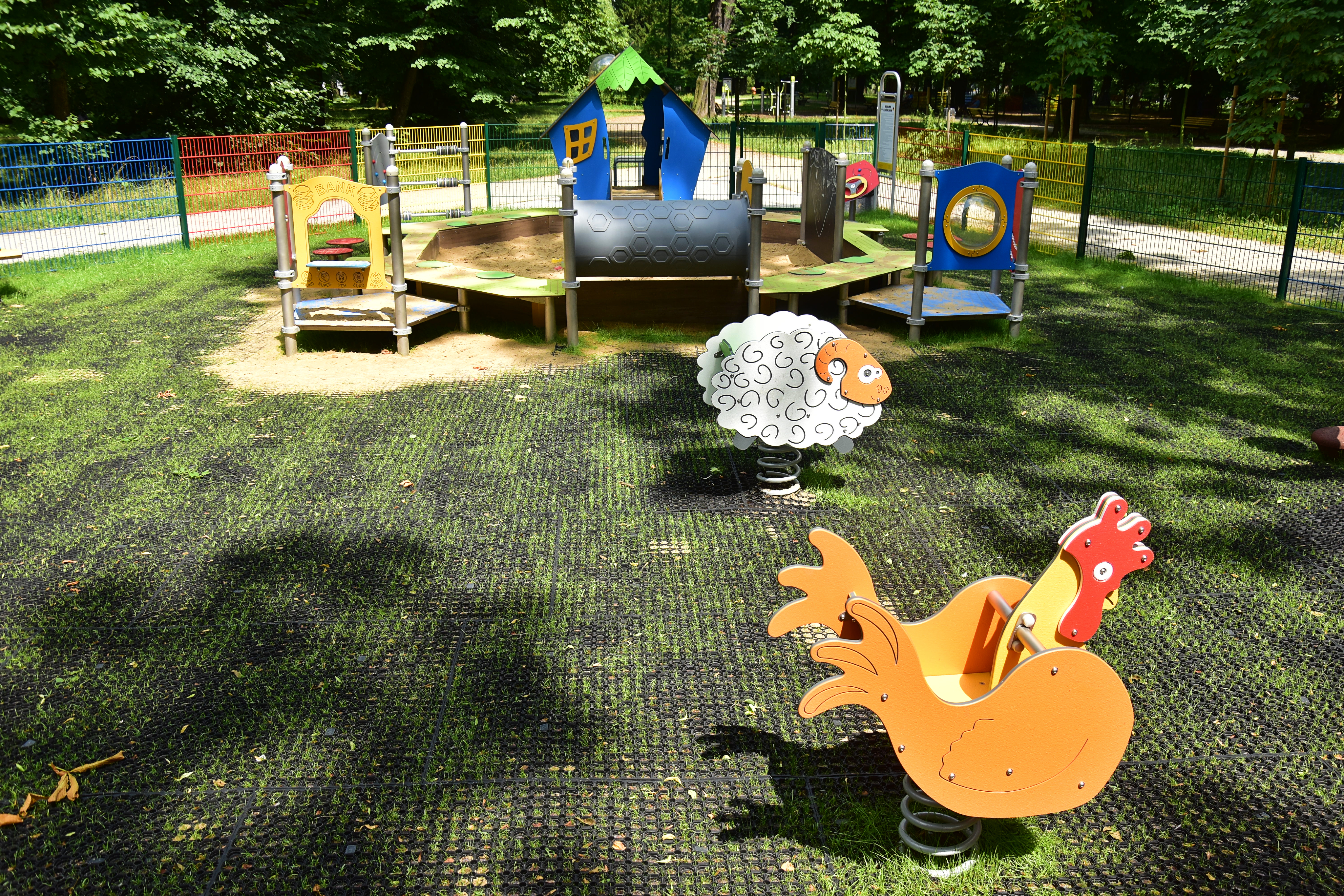 Plac zabaw wraz z podwójną tyrolką w Parku Starokozielskim znajdującym się między ul. Kozielską a ul. Andersa. Stworzono w nim dwie strefy, pierwszą przeznaczoną dla maluchów, drugą dla nieco starszych dzieci. W ogrodzonej strefie dla maluchów zamontowano karuzelę, bujaki, wielofunkcyjną piaskownicę z wbudowanymi na obrzeżach zabawkami (m.in. tablicą do pisania, liczydłem, domkiem ze zjeżdżalnią). W strefie dla starszaków, poza ogrodzeniem zamontowano duży zestaw zabawowy ze ścianką wspinaczkową i zjeżdżalniami.