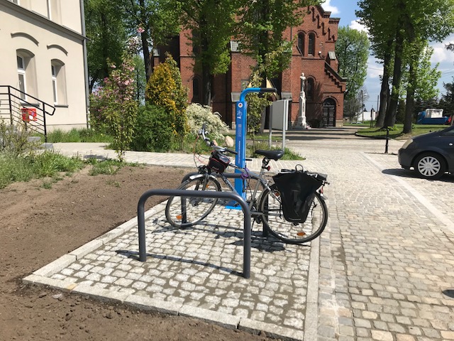 Stacja naprawy rowerów z dwoma stojakami jest zamontowana przy Urzędzie Pocztowym przy ul. Łanowej 2.
